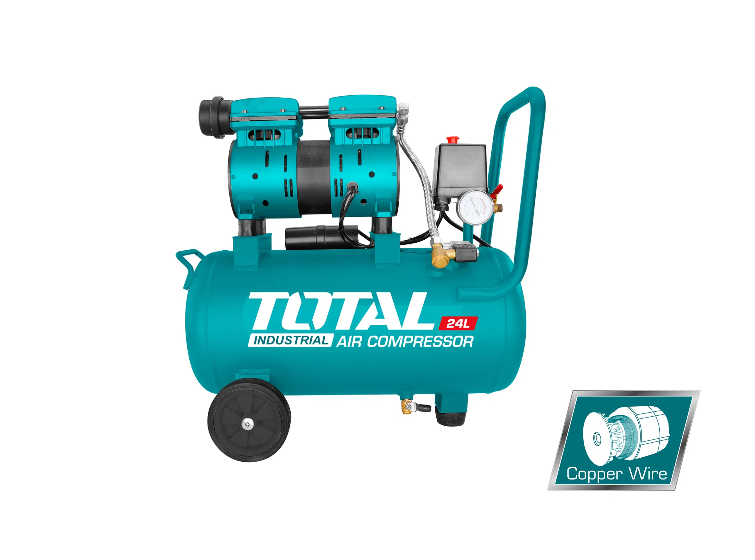 Voltage:220-240V~50Hz Input power: 1.5 kW (2 HP) Tank:24L(6.3Gal) Noise:96db 1000HR lifetime promise Aluminium wire motor Pump lubricated with oil No-load speed:2850rpm, Operation pressure:max.8bar Packed by carton box